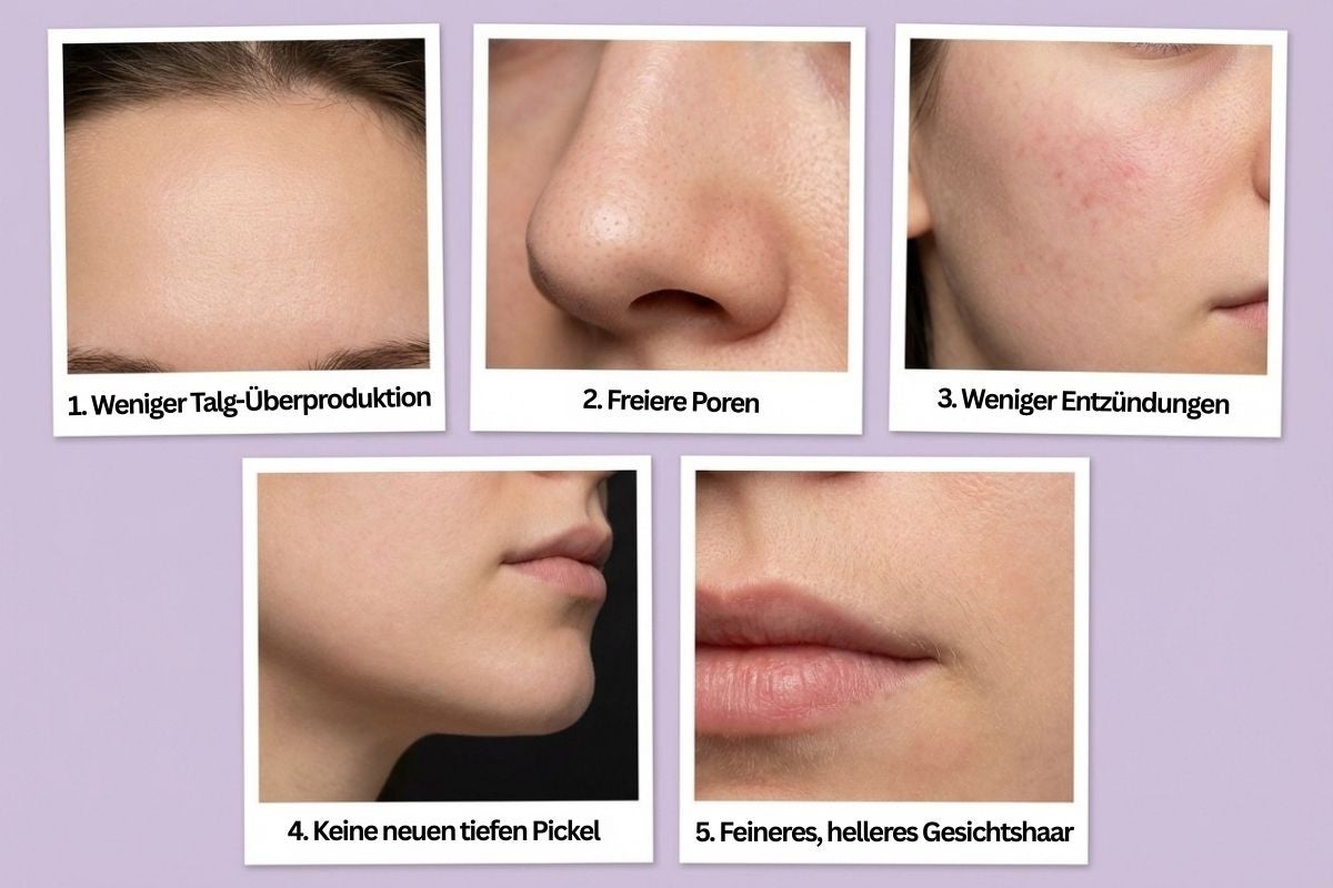 Nach vier Wochen: Keine neuen tiefen Entzündungen. Die bestehenden Stellen heilten langsam ab, ohne dass sofort die nächsten nachkamen. Ich hatte seit Langem zum ersten Mal den Eindruck, dass ich etwas positiv verändert.
